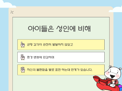 아이의 신체 컨디션뿐 아니라 정서적인 긴장 상태로 이어질 수 있습니다.