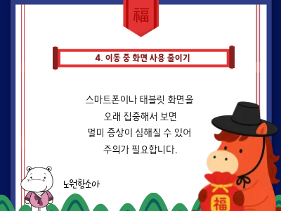 일상에서 실천할 수 있는 멀미 예방 방법은 다음과 같습니다.